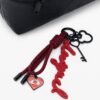 Közepes méretű, bőrhatású táska Mickey Mouse™ sziluettjű fém díszítésekkel, cserélhető pántokkal, levehető charmokkal és cipzáras külső zsebbel.