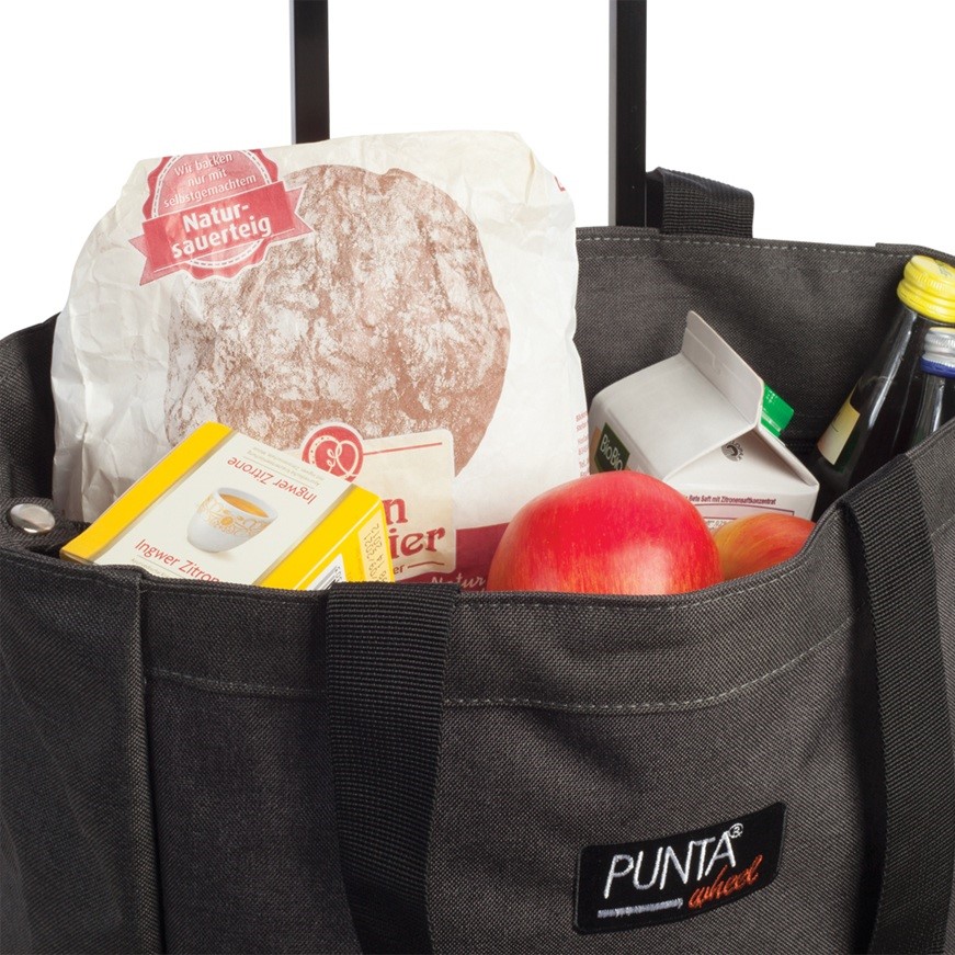 Punta klasszik bevásárlókocsijai simán gördülő kerekekkel,masszív állítható alumínium vázzal.Oldalsó kompressziós pántok.Praktikus elülső zseb cipzárral.Extra járdaszegélyvédelem és stabil lábak.Kényelmes hosszú hordozópántok tépőzáras rögzítéssel.17 kg teherbírás.Egyszerűen gurulj, ahelyett, hogy cipelnél – de stílusosan.