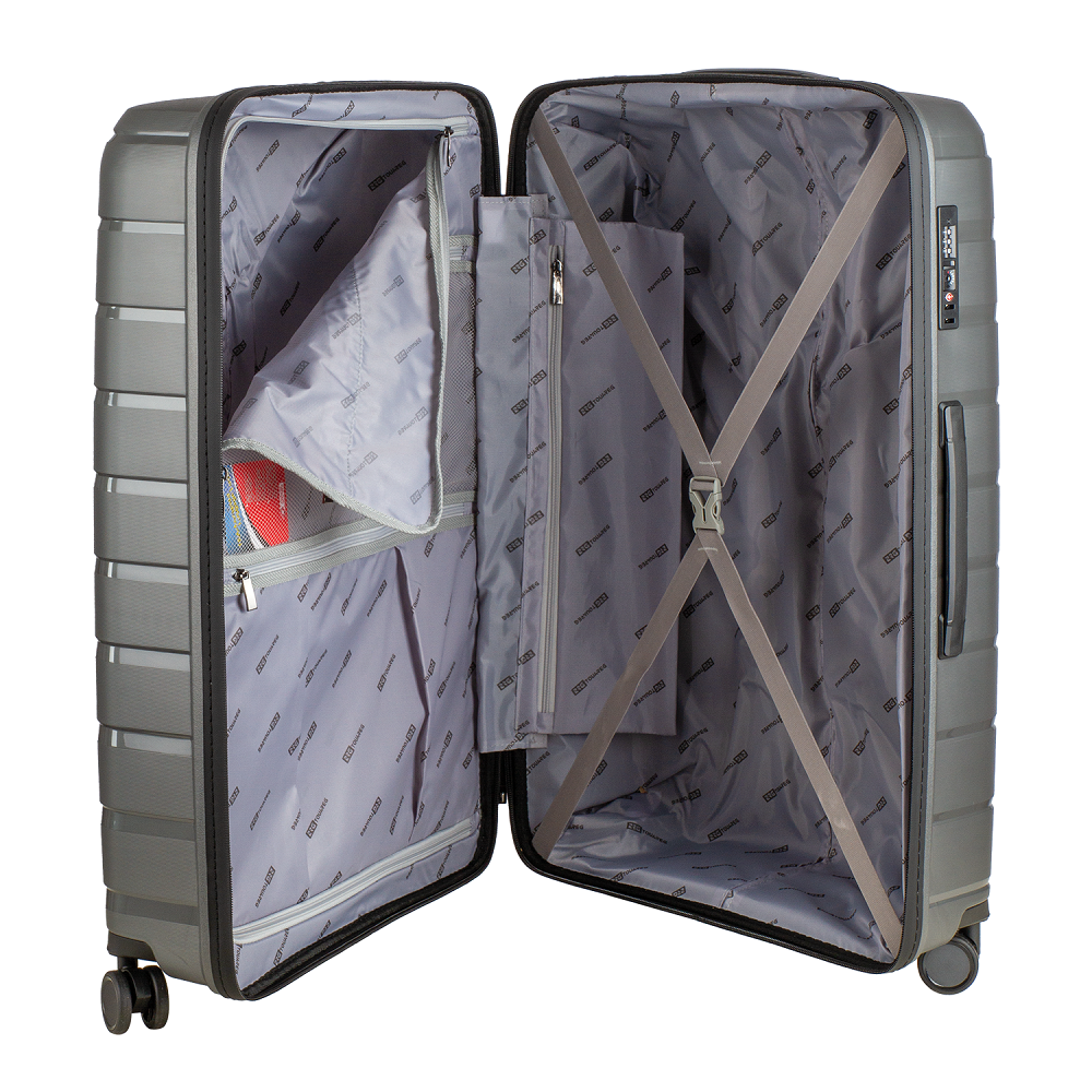Touareg keményfedeles utazó bőrönd szürke színű, 65 x 43 x 24 cm-es. Rendkívül jól pakolható, repülős-, buszos-, autós utazásokhoz az egyik legpraktikusabb választás. A bőrönd súlya 2,7 kg. Cipzár mellett TSA számkombinációs zárral záródik, ezzel extra biztonságban tudhatja a bőröndje tartalmát. A kényelmes mozhathatóság érdekében fogantyúval és kihúzható kétszáras húzókarral és 4 kerékkel rendelkezik a Touareg keményfedelű kabinbőrönd. Amennyiben segítségre van szüksége a legmegfelelőbb bőrönd kiválasztásában, keressen minket bizalommal!